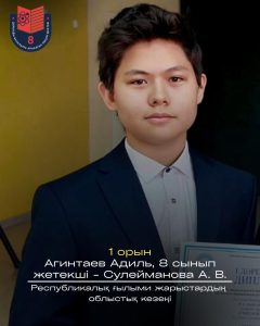 Агинтаев Адиль, 8 сынып — жетекші Сулейманова А.В.