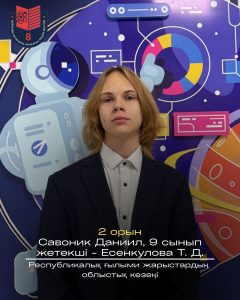 Савоник Даниил, 9 сынып — жетекші Есенкулова Т.Д.