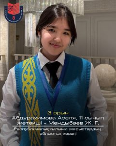 Абдурахимова Аселя, 11 сынып — жетекші Мендыбаев Ж.Г.
