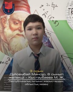 Дүйсембай Мансұр, 8 сынып — жетекші Кыстаубаева М.Ж.