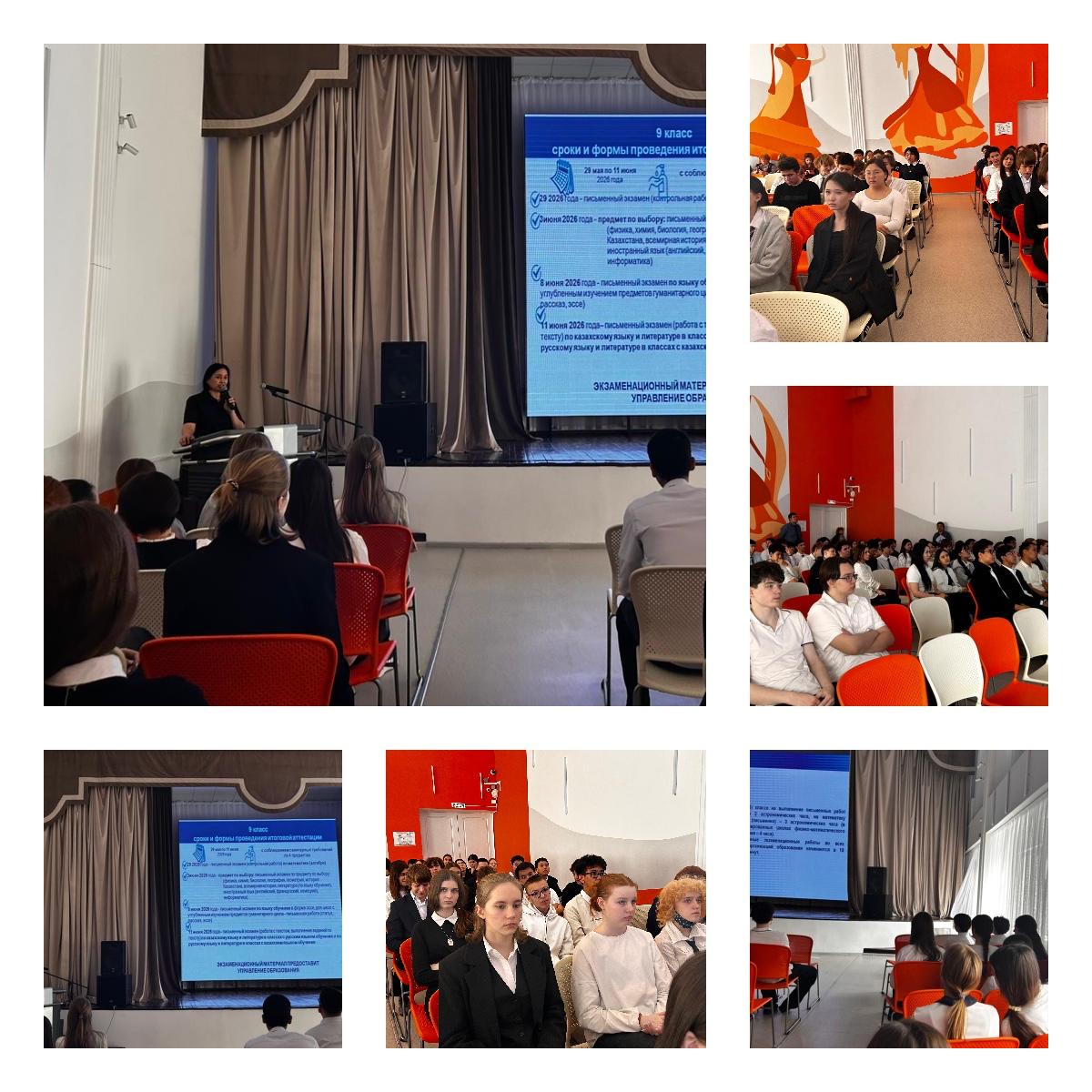 Іс-шара барысында оқушыларға емтихандарды өткізу тәртібі, мерзімдері, сондай-ақ дайындыққа қойылатын талаптар туралы толық ақпарат берілді. Ерекше назар емтихан тапсырмаларының құрылымына, бағалау критерийлеріне және емтихан тапсыру кезіндегі тәртіп ережелеріне аударылды.