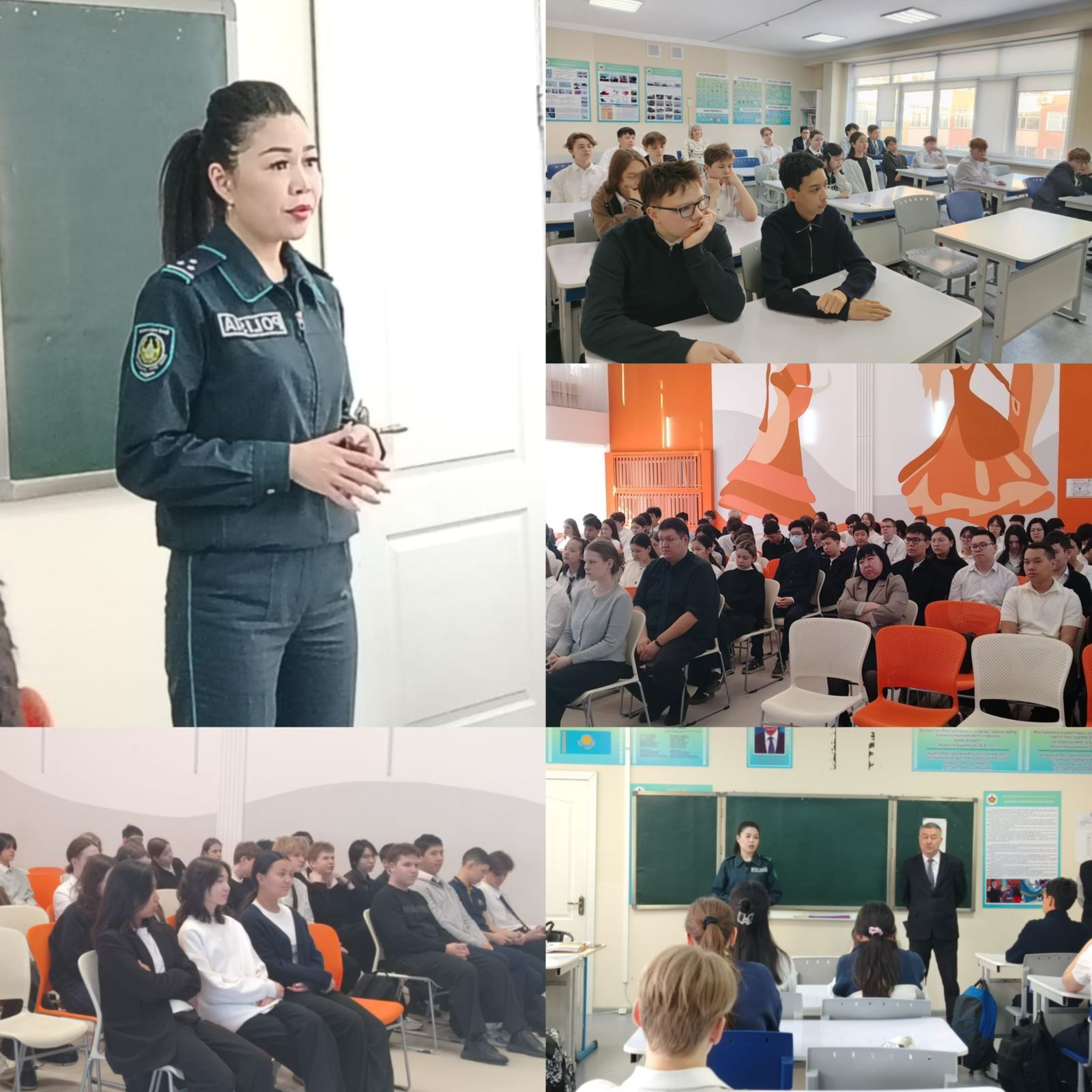 Кездесу барысында оқушыларға жол қозғалысы қауіпсіздігі ережелерін сақтау мәселелері, сондай-ақ шомылу маусымы кезіндегі қауіпсіздік шаралары түсіндірілді. Инспектор жолда өзін ұстау мәдениеті, жаяу жүргіншілердің жауапкершілігі және жол-көлік оқиғаларының алдын алу жолдары туралы айтып өтті.