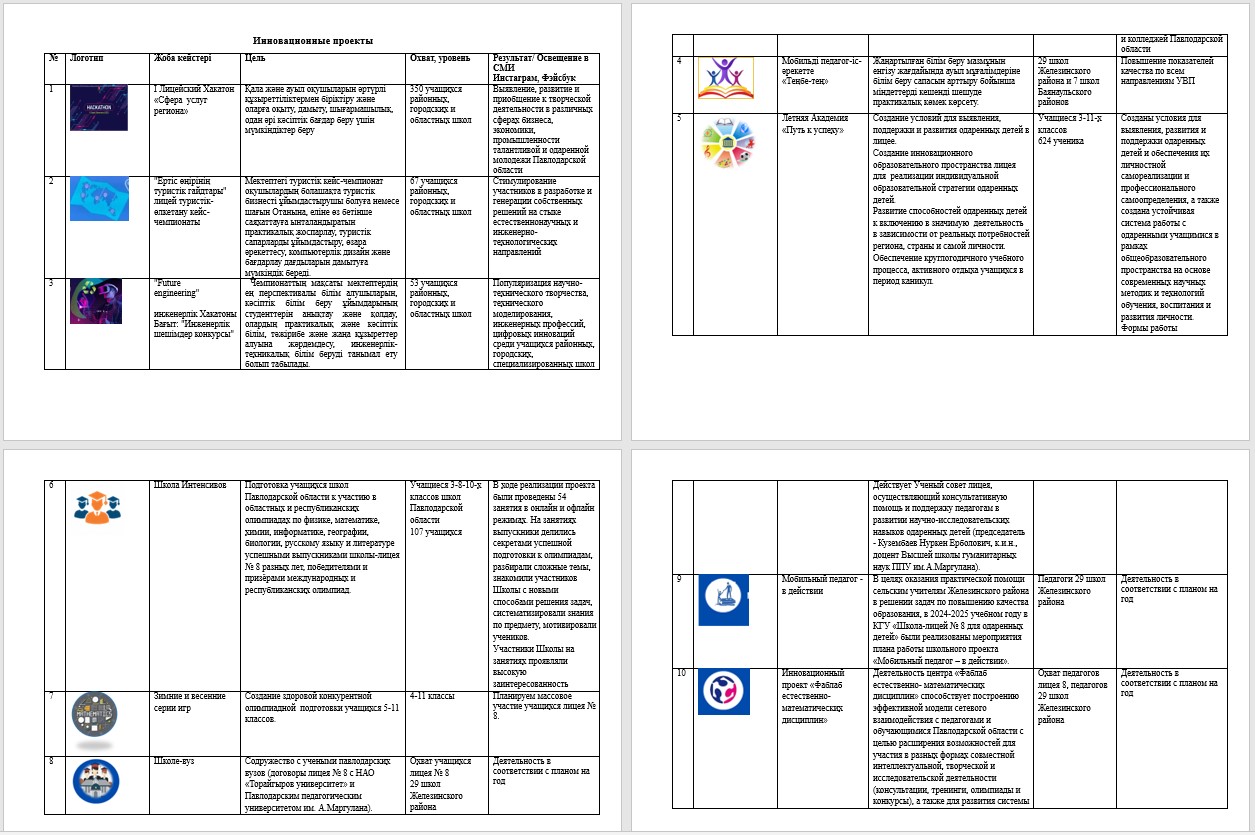 ИННОВАЦИЯЛЫҚ ЖОБАЛАР